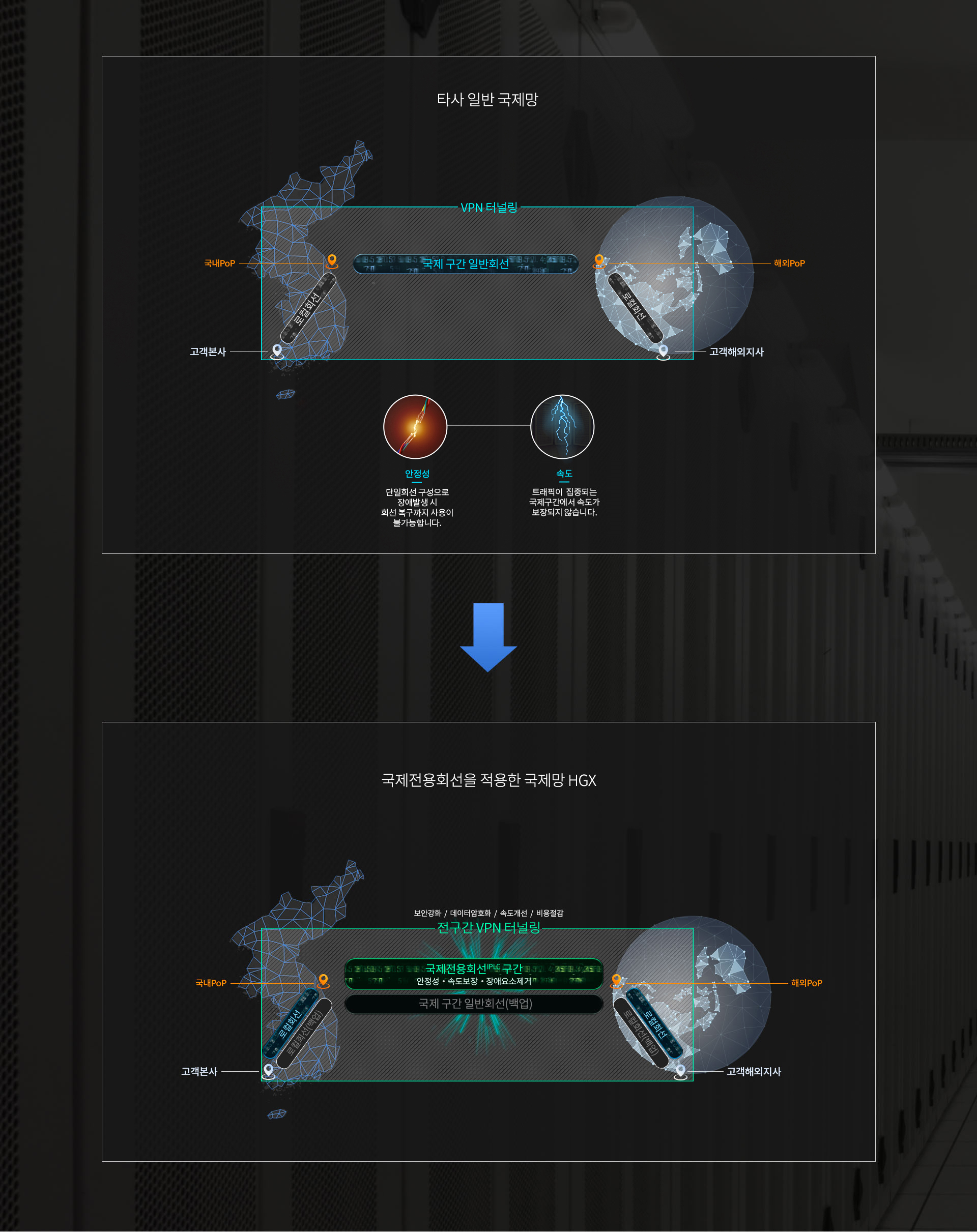 | 구분 | HGX전용회선 | 초고속인터넷 | IPLC(국제전용회선) | |