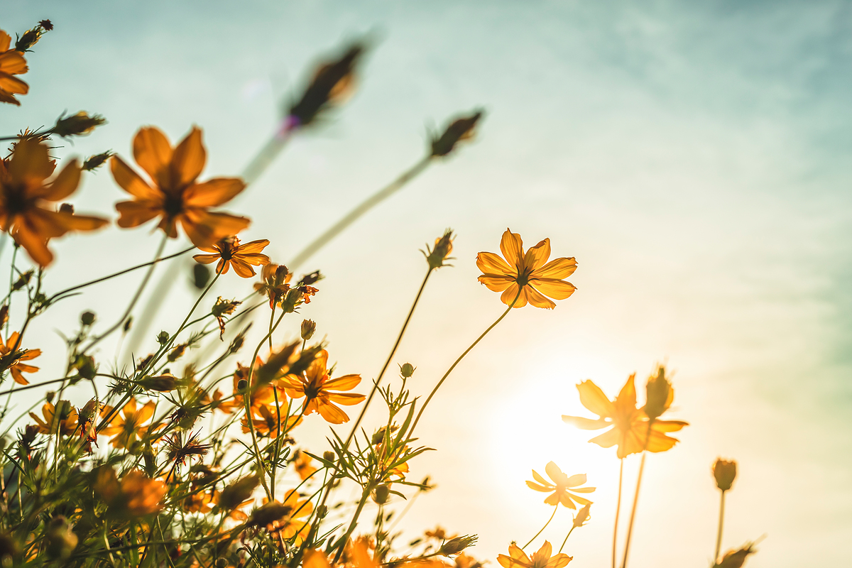 코스모스, 황화코스모스, 국화 등 다양한 가을초화들 속에서
