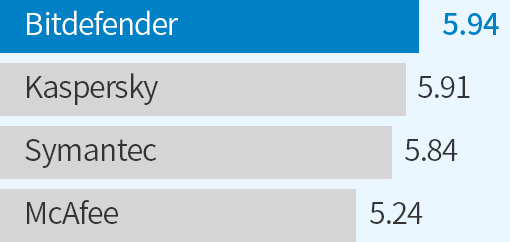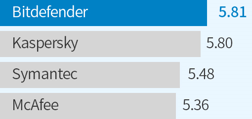 (평점 0~6중 최고점 6점). 총점. Bitdefender Internet Security.