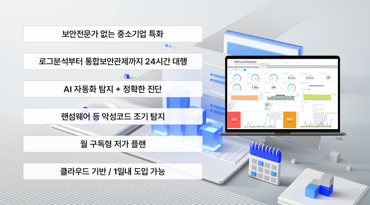 중소기업 대상의 네트워크보안 관리 서비스를 제공합니다.